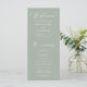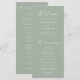 Mit diesem eleganten Hochzeitsprogramm mit graziöser weißer Kalligraphie auf einem ruhigen, schlängelgrünen Hintergrund schaffen Sie einen bleibenden Eindruck. Dieses vielseitige Design ist perfekt für Hochzeiten jeder Jahreszeit und Anzug sowohl für feierliche als auch lässige Feiern. Das Programm kann mit den Namen des Paares, dem Hochzeitstag und den Zeremoniell-Details in fett weißer Schrift personalisiert werden, um sicherzustellen, dass Ihre Gäste alle Informationen haben, die sie benötigen. Die Rückseite zeigt elegant die Namen Ihres Brautparty an und fügt eine durchdachte Touch hinzu. Mit seinem modernen, einfachen und zeitlosen Design ergänzt dieses Programm Ihre Hochzeit um ein anspruchsvolles Ambiente und ergänzt gleichzeitig Ihr gesamtes Thema.