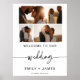Ein modernes und elegantes Begrüßungszeichen mit einem sauberen 5-Foto-Collage-Layout gepaart mit minimalistischer Schwarz-Weiß-Typografie. Das Design hebt Ihre Lieblings-Verlobung oder Ihr Paar Fotos hervor und behalte das Gesamtbild einfach und zeitlos. Dieses Zeichen ist ideal für die Begrüßung von Gästen bei Ihrer Zeremonie oder Ihrem Empfang und Set den Ton für eine stilvolle und herzliche Feier. Ideal für zeitgenössische, minimalistische oder Foto-orientierte Hochzeiten.