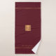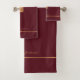 Trendy Luxus exklusiv aussehendes mit Monogramm Badetuch-Set mit einem vergoldeten Kupfer Metal Glitzer Platz und Linien auf einem stilvollen dunkelroten Wein burgundy Hintergrund. + Personalisieren Sie es mit Ihrem Namen oder Familiennamen und Monogramm Namen initial.