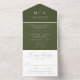 Moderne elegante Mongram Olive Green Wedding All In One Einladung
