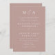 Feiern Sie Ihren Hochzeitstag mit dieser minimalistisch-modernen Einladung mit Ihren Monogramm-Initialen und Hochzeitsdetails in eleganter weißer Schrift. Graceful Kalligraphie Skriptakzente fügen eine romantische, zeitlose Touch hinzu. Der weiche, staubige Hintergrund der Rose kann auf jede gewünschte Farbe angepasst werden, sodass Sie perfekt zu Ihrer Hochzeitspalette passen. Diese Einladung ist für Paare gedacht, die einen gepflegten und raffinierten Stil schätzen und bietet eine schicke und personalisierte Art, Ihre Gäste einzuladen. Personalisieren Sie Ihre noch heute!