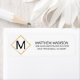 Elegante Rücksendeadressen-Aufkleber in Weiß mit schwarzen Buchstaben und Imitaten quadratisch / diamant goldfarben Rahmen. Initialmonogramm des Buchstaben Fügen Sie diese zu Ihren Umschlägen hinzu, um eine Touch Klasse hinzuzufügen. Perfekt für jeden Anlass; Hochzeit, Geburtstag, Ankündigung, Abschluss. Bearbeitbare Vorlagen - Fügen Sie Ihre eigenen Informationen hinzu. In der Sammlung "ADDRESS RETURN LABELS" gefunden
