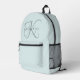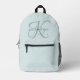 Moderne elegante Monogram Script Aqua Blue Bedruckter Rucksack