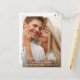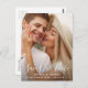 Eine einfache Skripthochzeit speichert das Datumskartendesign mit stilvollen weißen Schriftzeichen. Fühlen Sie sich frei, um das Bild des Paares und Text personalisieren.
