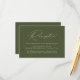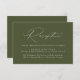 Einfache und elegante Hochzeitskarten mit "Empfang" in einem weißen, modernen Kalligrafieschrift mit einem soliden, olivengrünen Hintergrund (oder einer beliebigen Farbe). Die minimalistische Hochzeitskarte wird durch das Hinzufügen von Empfang-Details in weißer Schrift personalisiert. Entworfen, um mit unserer Hochzeitskollektion "Moderne Elegance" zu koordinieren.