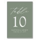 Trendy, minimalistische Hochzeitskarten mit modernen, weißen Schriftzeichen mit "Table" in einem modernen Kalligrafieschrift. Das Design ist mit einem schlauen grünen Hintergrund oder einer Farbe Ihrer Wahl versehen. Das Design wiederholt sich auf der Rückseite. Um die Tischkarten zu bestellen: Fügen Sie Ihren Namen, Ihr Hochzeitstag und Ihre Tischnummer hinzu. Fügen Sie jede Nummer einzeln in Ihren Warenkorb und Karo, wenn Sie fertig sind.