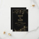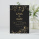 Moderne und elegante Imitate Gold Foil botanische Blume Kontur Save the Date Hochzeitskarte. Die Save the Date einladende Einladungskarte enthält mehr Schrift-Typografie und Gold-Blumenchic und einfaches Design auf schwarzem Hintergrund.