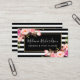 Moderne Elegante Schwarz Streifen rosa Blüte Visitenkarte