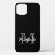 Moderner, minimalistischer Schwarz-Weiß-personalisierter Name mit Monogramm iPhone 12 Case. Es verfügt über ein Monogramm, das zunächst im Serifenstil-Schriftart und hübsche handgeschriebene Textvorlage für Vornamen in grauer, weißer Farbe auf schwarzem Hintergrund verwendet wird. Großartiges, weibliches personalisiertes Geschenk. Wenn Sie Hilfe oder passende Artikel benötigen, kontaktieren Sie mich bitte.