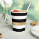 Moderne, elegante Papiertassen in schwarz, weiß und goldgestreiftem Muster. Gut für jeden Anlass. Passende Papierservietten und Teller sind erhältlich.