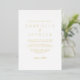 Diese moderne elegante Hochzeitseinladung besticht durch ein elegantes minimalistisches Design mit echten Goldfolien-Typografie auf der Vorderseite, während die Rückseite in Schwarz koordiniert wird