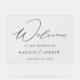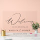Elegantes Begrüßungsschild mit "Welcome" in einem modernen, schwarzen Kalligrafieschrift mit klarem Acrylhintergrund. Personalisieren Sie das Acryl-Hochzeitszeichen, indem Sie Ihre Namen und das Hochzeitsdatum hinzufügen. Das Begrüßungsschild ist so konzipiert, dass es sich mit unserer Hochzeitskollektion "Moderne Elegance" abstimmt und in anderen Farben/Stilvarianten erhältlich ist.