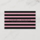 Moderne, elegante Schwarze Streifen und rosa Glitz Visitenkarte