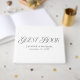 Einfaches, elegantes Hochzeitsguestbook mit "Gästebuch" in modernem schwarzen Typografie-Stil: eine Kombination aus Kalligraphie und Serifenschrift. Personalisieren Sie die Vorderseite des Schwarz-Weiß-Gästebuches mit Ihren Namen und Hochzeitstag. Fügen Sie Ihren verheirateten Namen und Ihr Hochzeitstermin dem Rückgrat des Gästebuches hinzu. Das stilvolle Gästebuch eignet sich hervorragend für moderne oder traditionelle Hochzeiten.