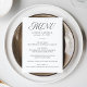 Fügen Sie Ihrer Feier eine Touch von Eleganz hinzu, mit unserem eleganten Hochzeitsmenü! Dieses elegante, schwarz-weiße Menü-Design besticht durch einen einzigartigen Stil moderner Typografie, der anmutige weiße Kalligraphie mit klassischer Serifenschrift verbindet. Personalisieren Sie die Vorderseite mit Ihren Namen, Hochzeitsdatum und Menüoptionen, um ein maßgeschneidertes Aussehen zu schaffen. Dieses vielseitige Menü mit 12x18 ist ideal für Hochzeiten, Proben, Verlobungen und vieles mehr. Machen Sie eine stilvolle Aussage mit diesem wunderschön gestalteten Menü!