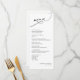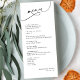 Diese benutzerdefinierbare Menu-Karte, die zur Koordination mit unserer Romantik Script Hochzeitskollektion konzipiert wurde, enthält einen Kalligrafietext mit einem klassischen Serif-Schriftart in Schwarz und einem anpassbaren Monogramm auf der Rückseite. Matching-Elemente verfügbar.
