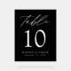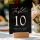 Trendy, minimalistische Hochzeitskarten mit "Tischnummer" in weißem Kalligrafieschrift mit schwarzem Acrylhintergrund. Zum Bestellen des Plastikkartenzeichens: Name, Hochzeitstermin und Tischnummer hinzufügen. Fügen Sie jede Nummer einzeln in Ihren Warenkorb und checkout, wenn Sie fertig sind.