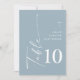 Moderne elegante Script Dusty Blue Tischnummer. Klicken Sie auf die Schaltfläche Personalisieren, um dieses Design mit Ihren Details anzupassen. Um die Farben und Schriftart zu ändern, wählen Sie dieses Design weiter bearbeiten, um zusätzliche Optionen für die Anpassung zu öffnen.