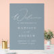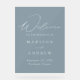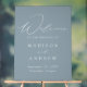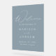 Elegantes Begrüßungsschild aus Acryl mit Begrüßung in einem modernen weißen Kalligraphieskript mit staubblauem Acrylhintergrund. Personalisieren Sie das staubblaue Hochzeitszeichen, indem Sie Ihren Namen, das Hochzeitsdatum und den Hochzeitsort hinzufügen. Das vertikale Begrüßungsschild ist so konzipiert, dass es sich mit unserer Hochzeitskollektion "Moderne Elegance" abstimmt und in anderen Farben/Stilvarianten erhältlich ist.
