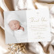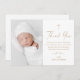 Moderne elegante Script Gold Cross Foto Taufe Dankeskarte