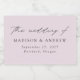 Die modernen Hochzeitsmarken mit Sektbriefen sind mit der Phrase "Hochzeit von" versehen, die in einem eleganten, schwarzen Kalligrafieschrift auf einem lila Hintergrund eines leichten Lavendels dargestellt ist. Personalisieren Sie die Schaumweinetiketten der Lavendel mit Ihren Namen, Hochzeitstag und Hochzeitsort. Die schlichten Hochzeitsmarken eignen sich hervorragend für Hochzeitsfeiern, Proben und Verlobungsfeiern.