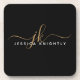 Personalisierter, moderner Kunststoff-Untersetzer mit einfachen, handgeschriebenen Kalligrafieschrift-Initialen oder Monogramm und Name in Gold und Weiß vor einem bearbeitbaren schwarzen Hintergrund für ein stilvolles oder berufliches Aussehen. ÄNDERUNGEN: Ändern Sie die Hintergrundfarbe, wählen Sie einen Styling-Schriftart aus oder ändern Sie den Textstil, die Farbe, die Größe und die Platzierung, indem Sie im Bereich PERSONALISIEREN für ein benutzerdefiniertes Design auf EDIT klicken. HILFE: Für Hilfe bei der Modifizierung oder Personalisierung des Designs, bei Farbänderungen, bei der Größenänderung, bei der Übertragung des Designs auf ein anderes Produkt oder wenn Sie die Dinge koordinieren möchten, wenden Sie sich bitte an den Designer, BEVOR Sie über die Registerkarte Zazzle Chat MESSAGE unten bestellen, oder per E-Mail an makeitaboutyoustore@gmail.com.