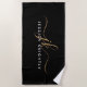 Personalisiertes modernes Strandtuch mit schlichten, handgeschriebenen Kalligrafiebeschriften oder Monogramm und Goldnamen vor bearbeitbarem schwarzen Hintergrund für ein stilvolles oder berufliches Aussehen. ÄNDERUNGEN: Ändern Sie die Hintergrundfarbe, wählen Sie einen Styling-Schriftart aus oder ändern Sie den Textstil, die Farbe, die Größe und die Platzierung, indem Sie im Bereich PERSONALISIEREN für ein benutzerdefiniertes Design auf EDIT klicken. HILFE: Für Hilfe bei Designänderungen oder Personalisierungen, Farbänderungen, Größensortierung, der Übertragung des Designs auf ein anderes Produkt oder zur Koordination von Gegenständen wenden Sie sich bitte an den Designer, BEVOR er die Bestellung über die Registerkarte Zazzle Chat MESSAGE unten durchführen lässt, oder senden Sie eine E-Mail an makeitaboutyoustore@gmail.com.