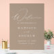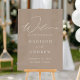 Elegantes Begrüßungsschild aus Acryl mit Begrüßung in modernem weißem Kalligrafieschrift mit Tuplexiglas. Personalisieren Sie das taupe Hochzeitszeichen, indem Sie Ihre Namen, das Hochzeitstermin und den Hochzeitsort hinzufügen. Das vertikale Begrüßungsschild ist so konzipiert, dass es sich mit unserer Hochzeitskollektion "Moderne Elegance" abstimmt und in anderen Farben/Stilvarianten erhältlich ist.