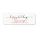 Moderne und elegante White and Red Script Hand Schriftstellende Typografie Frohe Weihnachtskarte Einladungs-Rücksendesiegel, das sich hervorragend für eine Weihnachtskarte oder Happy Holidays Einladung eignet. Der Text dieses handgeschriebenen modernen Schriftzeichen kann mit Ihrem Namen und Ihrer Adresse aktualisiert und angepasst werden