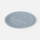 Moderne, elegante Skripte Dusty Blue Taufe Pappteller