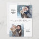 Diese moderne Save the Date-Karte verfügt über 3 Fotos, die mit elegantem Skripttext betont werden. Auf der Vorderseite erscheinen zwei Fotos und auf der Rückseite ein drittes wird für weitere Informationen ein Texteüberlagerungsfenster angezeigt. Personalisieren Sie mit den Namen des Paares und ihrem bevorstehenden Hochzeitsdatum und Ort.