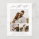 Moderne, elegante Script Foto Collage Save the Date Karte mit einem einfachen, modernen Gitter mit 3 Bildern auf der Vorderseite. Die Rückseite hat weitere Details. Klicken Sie auf die Schaltfläche Bearbeiten, um dieses Design mit Ihren Fotos und Details anzupassen.