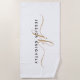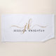 Personalisiertes, modernes Strandtuch mit einfachen, extravaganten Schriftzeichen oder Monogramm und Namen in der Farbkombination (in Gold und Schwarz vor einem bearbeitbaren weißen Hintergrund dargestellt) für ein stilvolles Aussehen. ÄNDERUNGEN: Ändern Sie die Hintergrundfarbe, wählen Sie einen stylierten Grafikhintergrund oder ändern Sie den Stil, die Farbe, die Größe und die Platzierung des Schriftartes für ein benutzerdefiniertes Design. HILFE: Für Hilfe bei Designänderungen oder Personalisierungen, Farbänderungen, Größensortierung, der Übertragung des Designs auf ein anderes Produkt oder zur Koordination von Gegenständen wenden Sie sich bitte an den Designer, BEVOR er die Bestellung über die Registerkarte Zazzle Chat MESSAGE unten durchführen lässt, oder senden Sie eine E-Mail an makeitaboutyoustore@gmail.com.