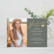Diese doppelseitige 2-Foto-stilvolle Abschluss-Ankündigung oder Dankeschön-Karte, verfügt über modernen Text verschmolzen mit eleganten Kalligraphie-Skript in goldfarben und weiß auf sage grün. Fotos sind vorne und hinten, ideal für das Framing. Der Hintergrund kann einfach an eine Farbe Ihrer Wahl angepasst werden. Um mehr zu sehen, besuchen Sie meinen Shop hier unter "www.Zazzle.com/LakeViewCardCo". Danke