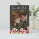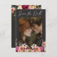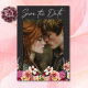 Unsere Holzkohle Schwarze Hochzeit speichern die Dattelkarte mit Ihrem Lieblings-Foto mit einem auffallenden Bouquet von Wildblumen auf der Sommerwiese in Rosa, Magenta, Creme und Gelb mit üppiger Vegetation, ist ein modernes Meisterwerk. Der knallige, weiße Text verleiht dem Ganzen eine Touch Eleganz, während der dunkle Hintergrund für Ihren besonderen Tag eine dramatische Kulisse schafft. Dieses Design ist eine atemberaubende Mischung aus moderner Eleganz und zeitloser Romantik. Erstellt von der einfachen Farmhouse Press.