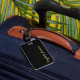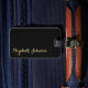 Maßgeschneidertes, personalisiertes, niedliches, elegantes Imitat Goldtypografie-Skript, moderne, cool chic-stilvolle geometrische, leicht graue Karos mit Schachbrettmuster Hintergrund, klassisch schwarz, haltbar Acryl Gepäcktasche mit Lederband. Geben Sie einfach Ihren Namen, Ihre Adresse und Ihre Telefonnummer ein, um Ihre Wünsche anzupassen. Ein tolles Geschenk für Hochzeiten, Flitterwochen, Geburtstag, Abschluss, Weihnachten, Feiertage und vieles mehr.