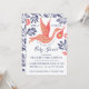 Schöne moderne verzierte Storchmädchen Dusche Einladung. Die Einladung enthält eine schöne rot rosa und Imitate goldenen Storch whimsical Illustration, die ein kleines Mädchen zu seiner Mama und Papa tragen. Auf der Rückseite befindet sich ein modernes marineblaues elegantes Blatt- und Rebmuster, das die Stork-Illustration und das Voreinladungs-Kunstwerk wunderbar ergänzt. Alle Illustrationen in dieser modernen, eleganten und skurrilen Baby Girl Dusche Einladung sind handgezeichnet Original-Kunstwerke von Moodthology. Sie können die Textgröße, Textfarbe, Schriftart und Layout für Ihre individuelle Designvorliebe anpassen.