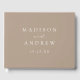 Elegantes Hochzeitsguestbook mit Namen und Hochzeitsdatum in weißer Schrift mit taupem Hintergrund. Personalisieren Sie die Wirbelsäule des einfachen Hochzeitsgast-Buches mit Ihrem verheirateten Namen und Hochzeitsdatum.