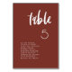 Moderne elegante Terracotta-Sitzkarten Tischnummer