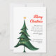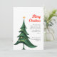 Versenden Sie Ihren Urlaub mit dieser modernen, eleganten Weihnachtskarte, die ein elegantes, grünes Weihnachtsbaumdesign mit einem kleinen gelben Stern auf der Oberseite aufweist. Der schlichte, saubere und minimalistische Stil schafft ein zeitgenössisches Ambiente, ideal für diejenigen, die elegante und einfache Designs Liebe. Kann leicht mit Ihrem eigenen Gruß und Familiennamen personalisiert werden. Der weiße Hintergrund hebt das frische, moderne Aussehen hervor und macht es zu einer idealen Karte für die Urlaubssaison.