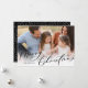 Mit dieser eleganten Urlaubskarte senden Sie Weihnachten Ihren Freunden und Ihrer Familie. Ein Foto vorne, mit handbemalten weißen Schriftzeichen und einem Blumenmuster auf der Rückseite. Der moderne und minimalistische Stil wird Ihre Fotos in der Familie wirklich gelassen.