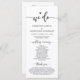 Herzlich willkommen in unserer Hochzeitstypografie, der eleganten, modernen Romantik-Schwarz-Schrift, dem Programm für Hochzeitsfeier. Es ist mit Scrollakzent entworfen, der personalisiert werden kann mit benutzerdefiniertem/personalisiertem Text für Ihr Brautparty, Zeremonie Details, Gedenkhinweise und Dankeschön-Nachricht. Wenn Sie weitere Programmkarten-Typen und -Größen suchen, durchsuchen Sie bitte unseren passenden Programmkartenabfrageabschnitt.