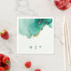Eine Hochzeitsserviette zum Thema Strand, die mit einer abstrakten Wasserfarbenszene eines Strandes und Wellen mit goldfarbenem Farbeffekt aufwartet (das Gold ist ein digitaler Effekt, keine echte Folie!). Elegant und elegant, einfach und modern, ist es eine schöne Wahl für eine Hochzeit am Strand im Sommer oder zu jeder Jahreszeit, für ein modernes Paar.
