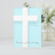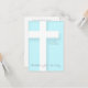 Einfaches und großes Christliches Kreuz mit weichem Schlagschatten auf helltürkisfarbenem Hintergrund.Design auf flacher Karteneinladung mit Texten für Erste Heilige Kommunion zum Anpassen. Sie können den Text (Farbe, Schriftart, Größe und Position) ganz einfach ändern, indem Sie auf die Schaltfläche Anpassen klicken. Passende Gästebücher (Hardcover und Spiralheft).