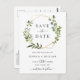 Moderne Eukalyptus-Blumenhochzeit rettet das Datum Postkarte