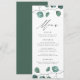 Elegante, individuelle Hochzeitsmenükarte mit den Details Ihres Hochzeitsmenüs in der Mitte der Speisekarte mit handgemalten, staubgrünen Eukalyptusbäumen und Blättern oben und unten. Das Menü wechselt zu einem dunkelgrünen Hintergrund mit Platz für Text und Fotos. Entworfen, um mit unserer modernen Eukalyptus Greenery Hochzeitskollektion zu koordinieren.