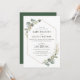 Grünes Thema mit Aquarell eucalyptus foliage und einem modernen goldenen geometrischen Rahmen. Der Text und die Farben können personalisiert sein, um Ihrem Hochzeitstil zu entsprechen.