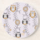Der Untersetzer kennzeichnet einige nette Eulen in den coolen modernen Farben unter Blumenreben.