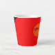 Diese moderne Tasse zeigt warme Farbtöne wie Rot und Orange und das Wort "Expresso" in der Mitte.