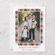 Freuen Sie sich auf festliche Grüße mit dieser modernen Farbblock-Grenze Urlaubsfotokarte. Das Design weist eine Grenze von Aquarellquadraten in festlichen Schmucktönen von Rot, Grün, Blau und Gold auf, die Ihr Lieblingsstift umrahmen. "Frohe Weihnachten" wird unten in klassischer Typografie und Raum angezeigt, um mit Ihrem Familiennamen in einer handgeschriebenen Schrift zu personalisieren. Auf der Kartenrückseite ist Platz für ein zusätzliches Foto und eine personalisierte Urlaubsbotschaft, was es zu einer fröhlichen und stilvollen Art macht, Freundinnen und Lieben herzliche Wünsche zu senden. Der Grußtext ist vollständig editierbar, sodass Sie ihn in "Happy Holidays", "Grüße der Jahreszeit" oder eine andere Nachricht Ihrer Wahl ändern können.